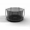 De ronde grijze trampoline AVYNA PRO-LINE 14 Inground Combi Ø 4m30 HD heeft een diameter van 430 cm en is voorzien van een soepele springmat en een zeer stevig en sterk trampoline randkussen met een extra dikke PVC laag.