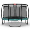 De BERG Champion 430 Grijs Levels + DeluxeNet 430 is een trampoline met de beste combinatie van kwaliteit en prijs. Het is een weerbestendig en duurzame trampoline die blijven het hele jaar buiten. De BERG Champion voldoet aan de zware eisen van veiligheid van BERG. Naast het feit dat extra breed, het randkussen van de BERG Champion 430 Grijs Levels + DeluxeNet 430 is ook extra dik. Dit geeft een grotere bescherming. De veren zijn bevestigd aan het springdoek door driehoekige haken en bevestigd door een 8 rijenstiksel. Het frame is aan de binnenzijde verzinkt en uit te maken roestvij. De TwinSpring Gold is een unieke veer van BERG waarmee de springenergie gelijdelijk wordt opgebouwd. Met deze veer zijn de krachten op het lichaam beduidend lager. Dit maakt de sprong hoger, veiliger en comfortabeler.