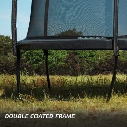 De ovale trampoline is door het stevige frame, het sterke net en de brede padding zeer veilig. Je kan je kinderen onbezorgd laten springen op de BERG Grand Champion 470 + DeluxeNet! Het Safety Net Deluxe heeft een lange levensduur. Dat komt door de zeer hoge netkwaliteit, het dikke schuim rondom de palen en het sterke bandmateriaal.