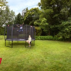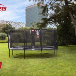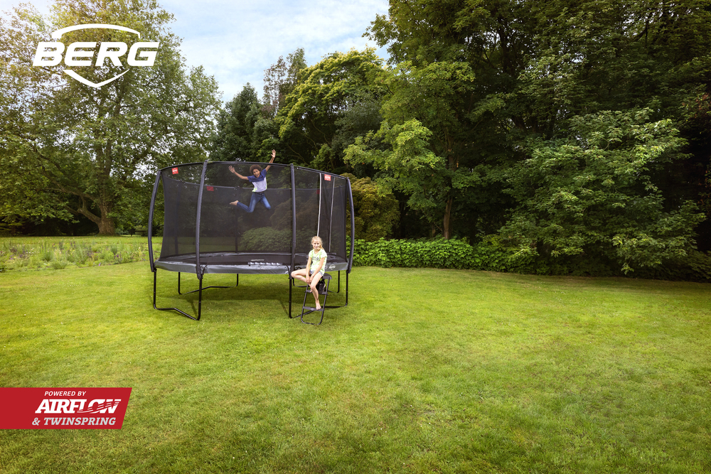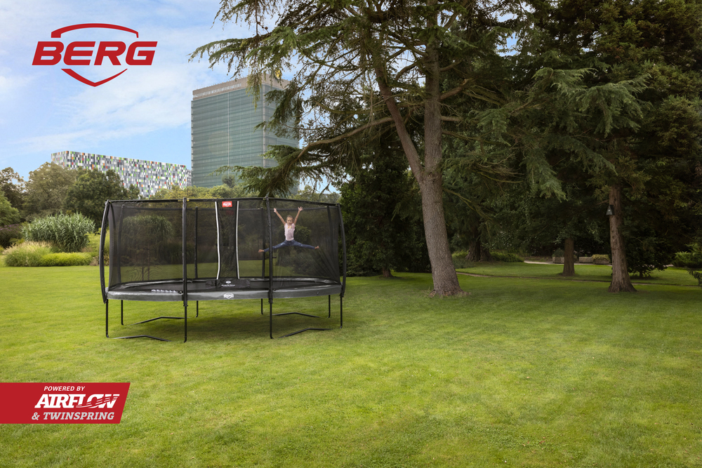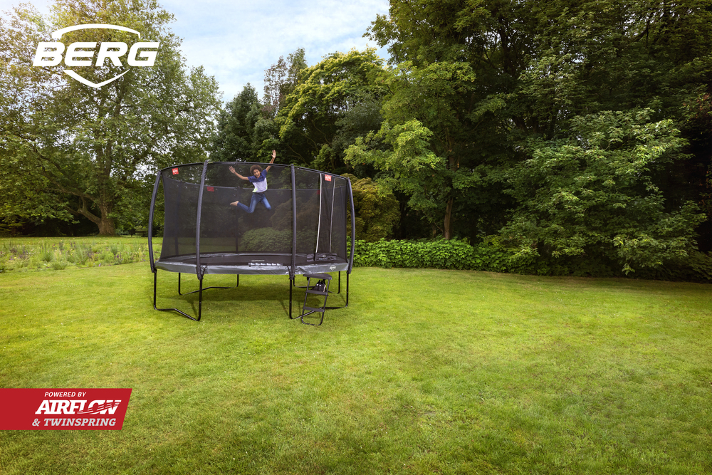 Wil je de allerbeste ovale trampoline? Kies dan voor een BERG Grand Elite 520 + DeluxeNet DLX XL. De ovale vorm combineert de voordelen van een ronde en een rechthoekige trampoline; met de efficiënte sterkte van een rond frame en het grote springoppervlak van een rechthoekige trampoline, wordt springen ontzettend leuk én veilig op de BERG Grand Elite 520 + DeluxeNet DLX XL! Het bijzondere aan een Elite is de oerdegelijke en altijd mooi blijvende beschermrand. Deze is super veilig en gemaakt van het allerbeste en -sterkste materiaal op de markt, wat ervoor zorgt dat de rand jarenlang mee gaat en optimaal beschermd is tegen de straling van de zon. Het Safety Net Deluxe, met zelfsluitende ingang, is door de gebogen palen extra stevig en veilig.