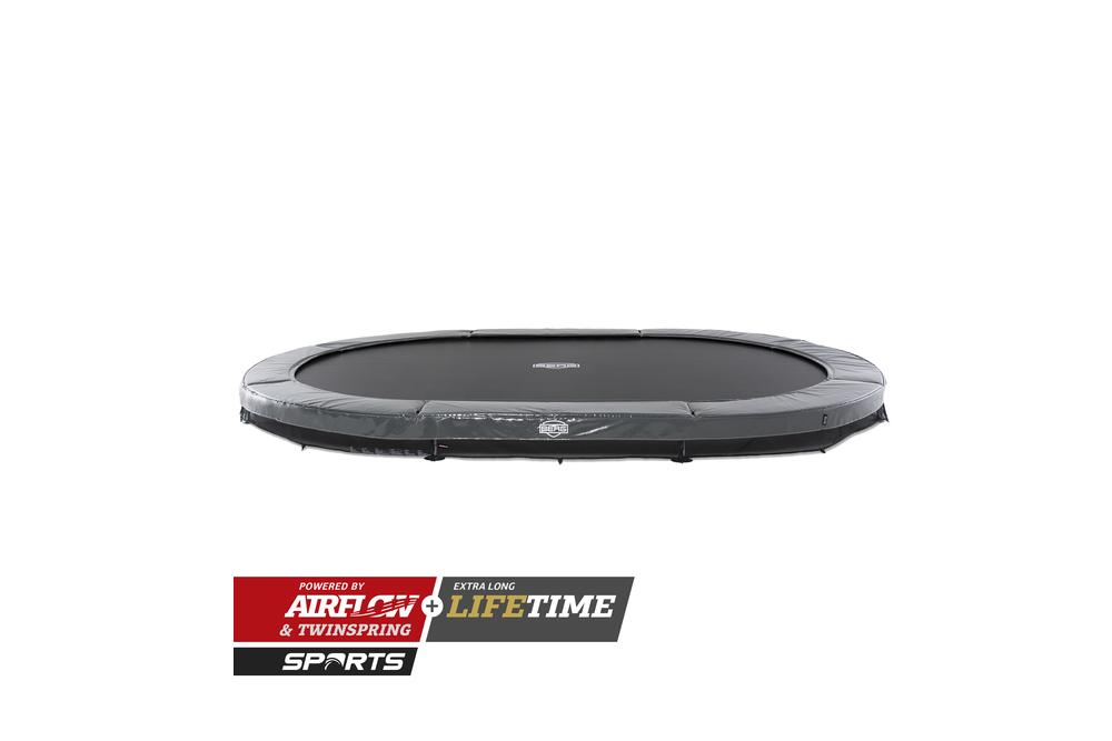 Wil je de allerbeste ovale trampoline? Kies dan voor een BERG Grand Elite Inground 520. De ovale vorm combineert de voordelen van een ronde en een rechthoekige trampoline; met de efficiënte sterkte van een rond frame en het grote springoppervlak van een rechthoekige trampoline, wordt springen ontzettend leuk én veilig op de BERG Grand Elite Inground 520! Het bijzondere aan een Elite is de oerdegelijke en altijd mooi blijvende beschermrand. Deze is super veilig en gemaakt van het allerbeste en -sterkste materiaal op de markt, wat ervoor zorgt dat de rand jarenlang mee gaat en optimaal beschermd is tegen de straling van de zon.
