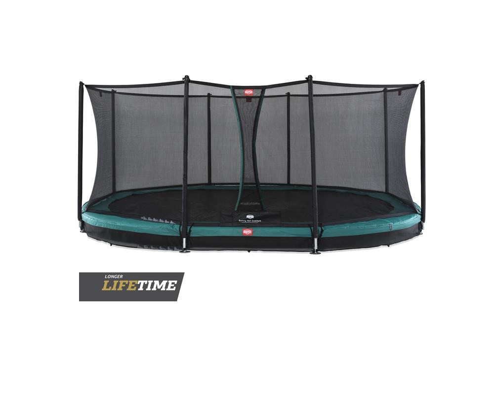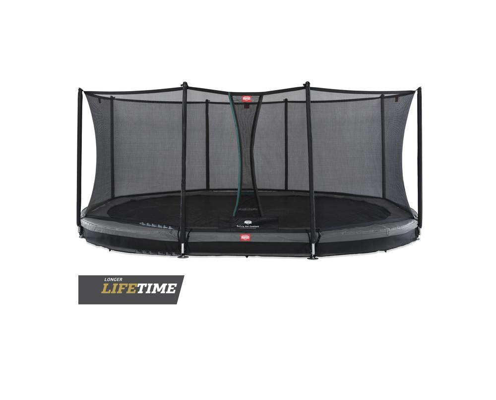 De BERG Grand Favorit Inground 520 + ComfortNet combineert de voordelen van een ronde en een rechthoekige trampoline; met de efficiënte sterkte van een rond frame en het grote springoppervlak van een rechthoekige trampoline, wordt springen ontzettend leuk én veilig! Door de mooie beschermrand en het roestbestendige frame staat je trampoline er altijd prachtig bij. Het Safety Net Comfort, met zelfsluitende ingang, heeft een zeer stevige constructie. Daarnaast is het net van de BERG Grand Favorit 520 + ComfortNet extra veilig door het dikke schuim; zowel kinderen als volwassenen kunnen veilig trampoline springen op een BERG Grand Favorit.