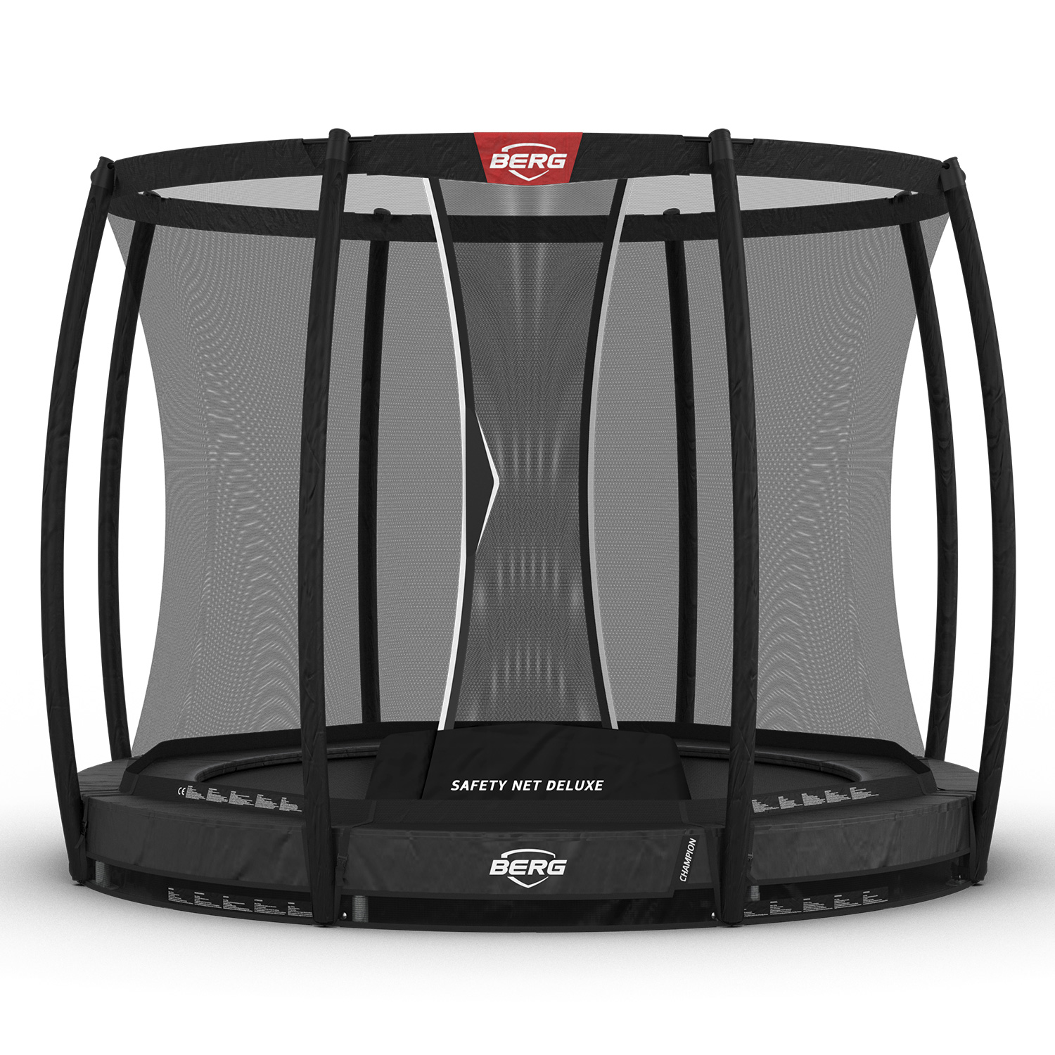 De BERG Inground Champion 270 + DeluxeNet 270 is een trampoline met de beste combinatie van kwaliteit en prijs. Het is een weerbestendig en duurzame trampoline die blijven het hele jaar buiten. De BERG Champion voldoet aan de zware eisen van veiligheid van BERG. Naast het feit dat extra breed, het randkussen van de BERG Inground Champion 270 + DeluxeNet 270 is ook extra dik. Dit geeft een grotere bescherming. De veren zijn bevestigd aan het springdoek door driehoekige haken en bevestigd door een 8 rijenstiksel. Het frame is aan de binnenzijde verzinkt en uit te maken roestvij. De TwinSpring Gold is een unieke veer van BERG waarmee de springenergie gelijdelijk wordt opgebouwd. Met deze veer zijn de krachten op het lichaam beduidend lager. Dit maakt de sprong hoger, veiliger en comfortabeler.