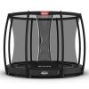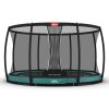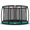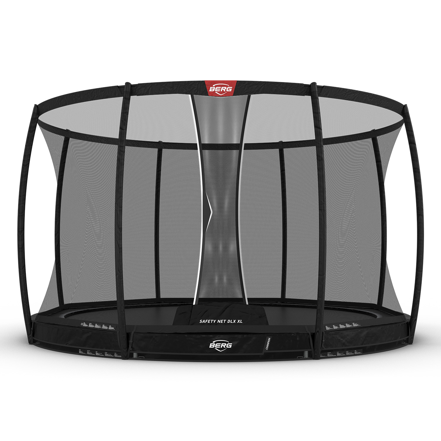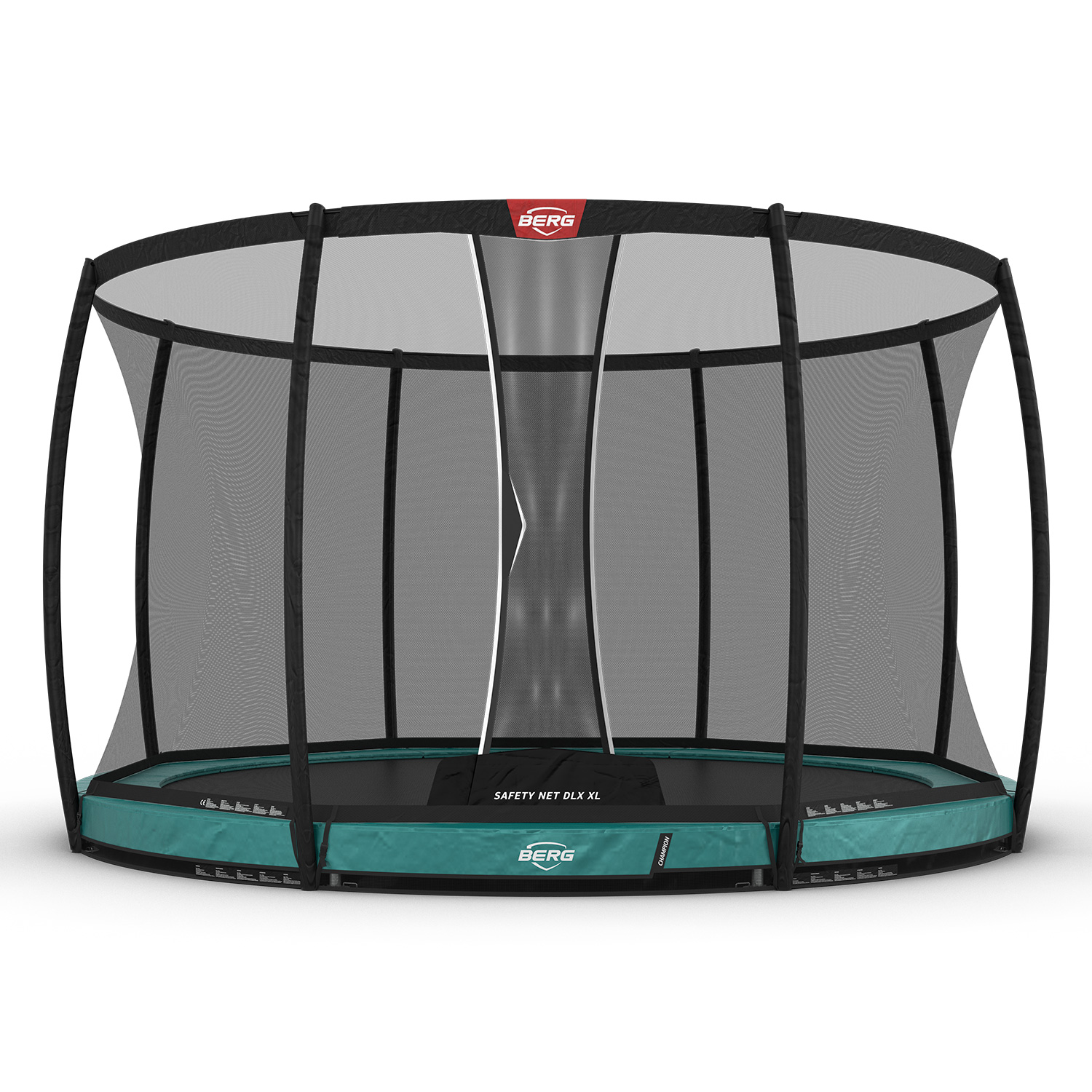 De BERG Inground Champion 430 + DeluxeNet 430 DLX XL is een trampoline met de beste combinatie van kwaliteit en prijs. Het is een weerbestendig en duurzame trampoline die blijven het hele jaar buiten. De BERG Champion voldoet aan de zware eisen van veiligheid van BERG. Naast het feit dat extra breed, het randkussen van de BERG Inground Champion 430 + DeluxeNet 430 DLX XL is ook extra dik. Dit geeft een grotere bescherming. De veren zijn bevestigd aan het springdoek door driehoekige haken en bevestigd door een 8 rijenstiksel. Het frame is aan de binnenzijde verzinkt en uit te maken roestvij. De TwinSpring Gold is een unieke veer van BERG waarmee de springenergie gelijdelijk wordt opgebouwd. Met deze veer zijn de krachten op het lichaam beduidend lager. Dit maakt de sprong hoger, veiliger en comfortabeler.