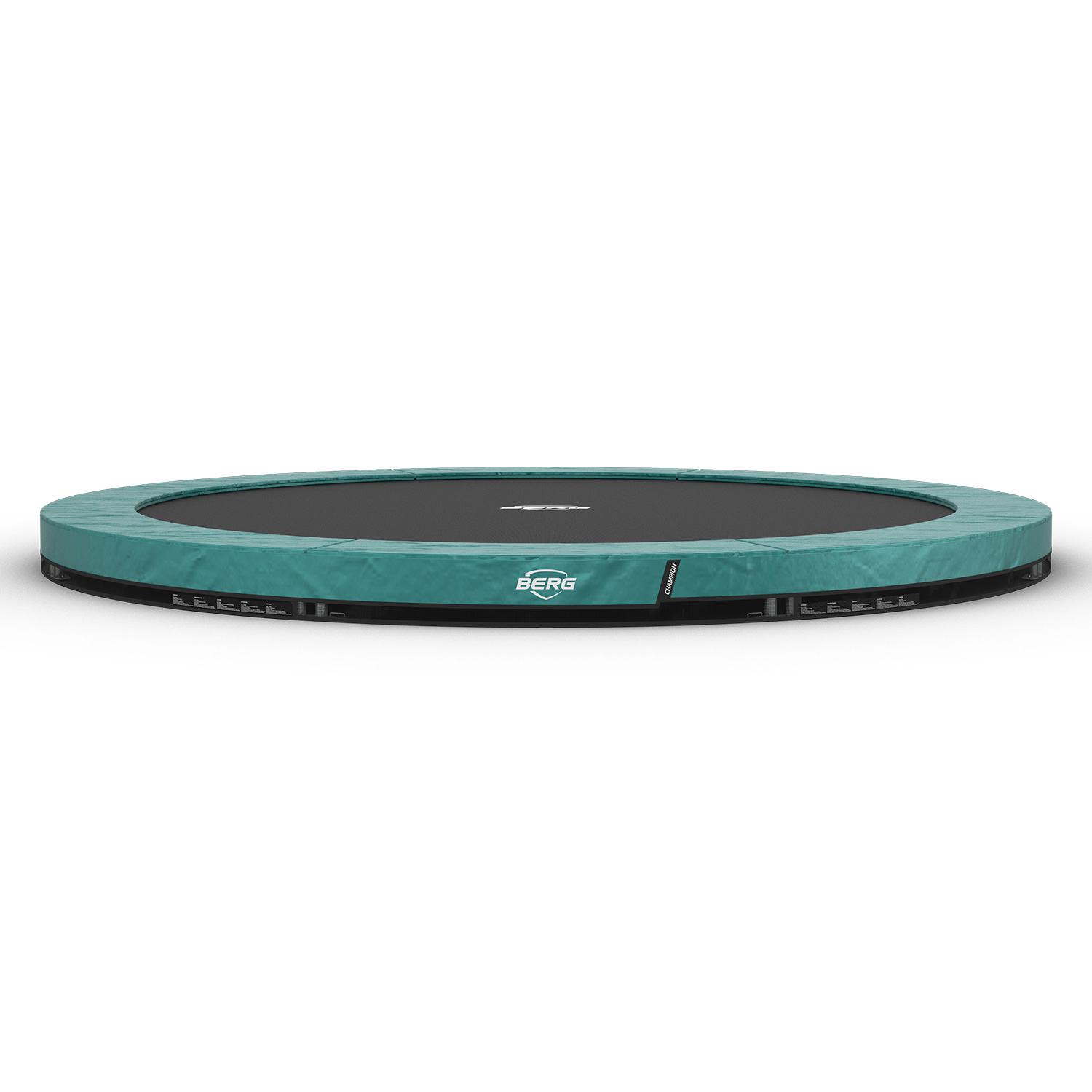 De BERG Inground Champion 430 is een trampoline met de beste combinatie van kwaliteit en prijs. Het is een weerbestendig en duurzame trampoline die blijven het hele jaar buiten. De BERG Champion voldoet aan de zware eisen van veiligheid van BERG. Naast het feit dat extra breed, het randkussen van de BERG Inground Champion 430 is ook extra dik. Dit geeft een grotere bescherming. De veren zijn bevestigd aan het springdoek door driehoekige haken en bevestigd door een 8 rijenstiksel. Het frame is aan de binnenzijde verzinkt en uit te maken roestvij. De TwinSpring Gold is een unieke veer van BERG waarmee de springenergie gelijdelijk wordt opgebouwd. Met deze veer zijn de krachten op het lichaam beduidend lager. Dit maakt de sprong hoger, veiliger en comfortabeler.