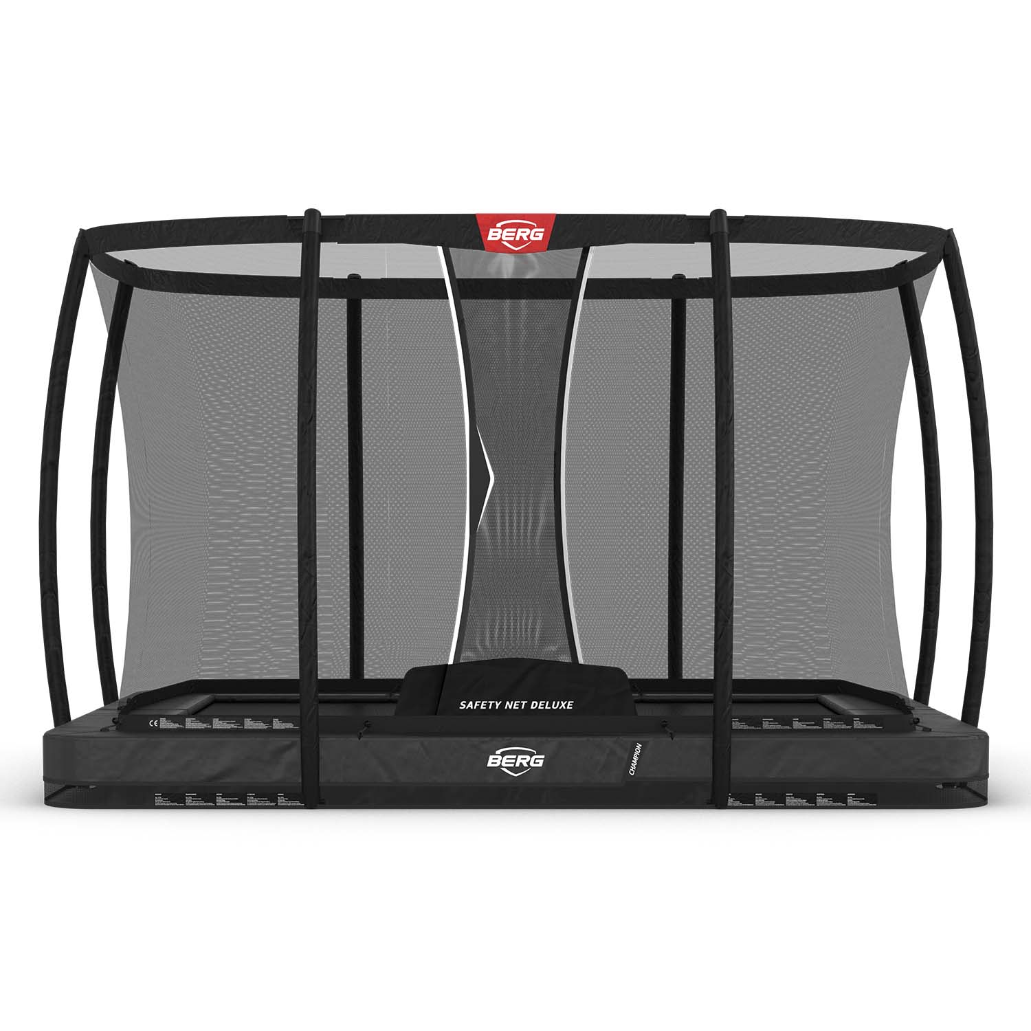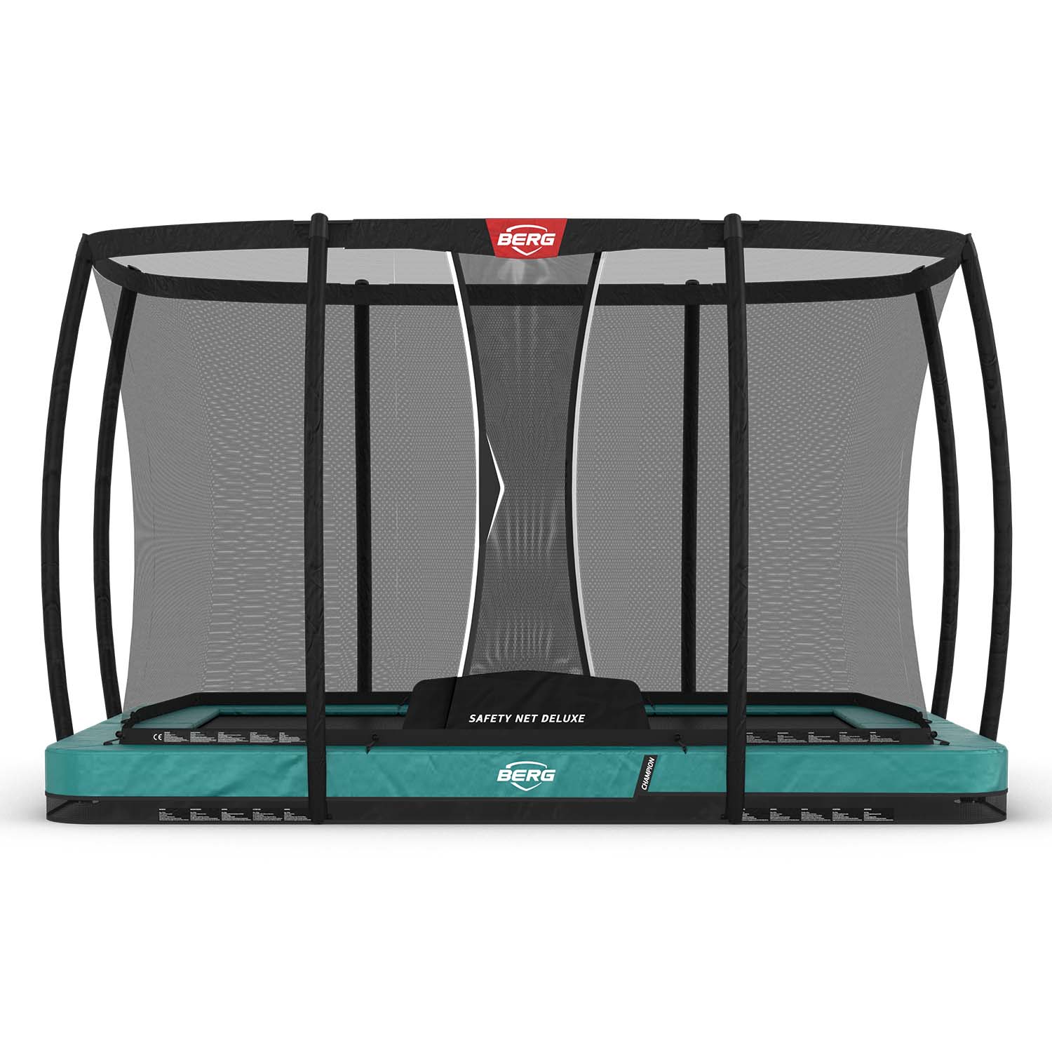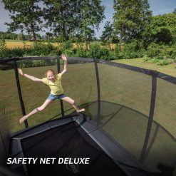 Op de BERG Ultim Champion Inground 330 + DeluxeN kan iedereen heerlijk springen! Het ontwerp van de trampoline zorgt dat je lang en veilig kan springen op een uitstekende trampoline. Het voordeel van een rechthoekige trampoline zoals de BERG Ultim Champion Inground + DeluxeN ten opzichte van een ronde trampoline is dat je over de hele lengte lekker kan springen. Door de vorm van de BERG Ultim Champion Inground 330 + DeluxeN past de trampoline ook vrijwel in elke tuin.