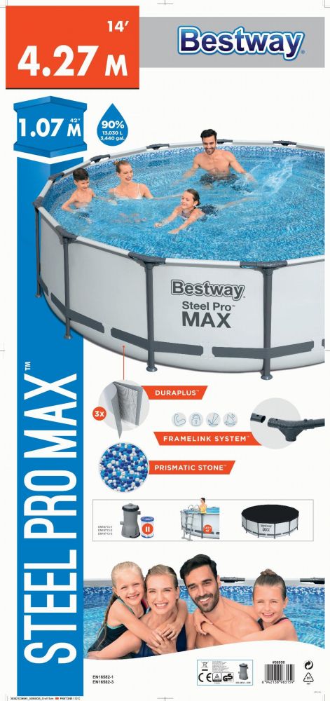 De zwembadwanden van de Bestway Steel Pro MAX zijn gemaakt met DuraPlus, innovatief materiaal dat bestaat uit drie lagen; twee lagen hoogwaardig PVC met daartussen een polyester gaaskern. Door deze wanden van Duraplus is het zwembad sterk, stevig en duurzaam.