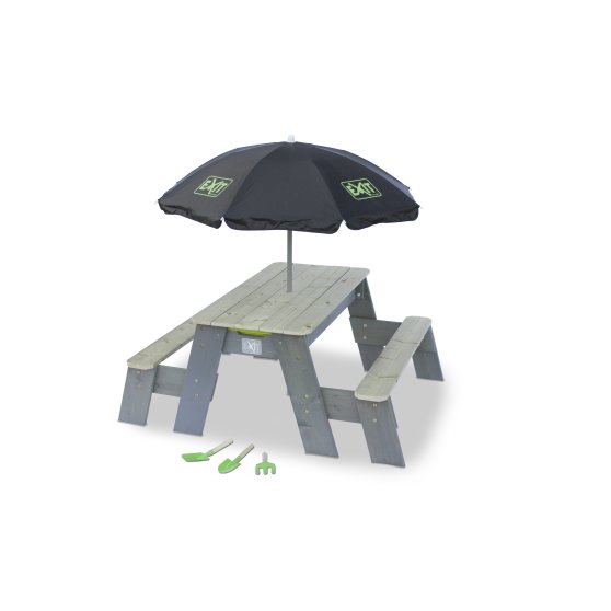 EXIT Aksent Zand Water- en Picknicktafel 2 bankjes met parasol en tuingereedschap