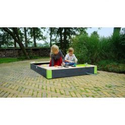 De Aksent houten zandbakken van EXIT Toys zijn eenvoudig te monteren en super stevig. De voorgeboorde planken worden in de hoeken bevestigd aan metalen koppelstukken, waardoor de zandbak stabiel staat. De hoeken hebben een opvallend groene kleur en dit in combinatie met het grijskleurige hout geeft de zandbakken een moderne uitstraling.