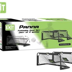 Panna voetbal is dé trend op het gebied van straatvoetbal. Een Panna is poorten, dit betekent dat je de bal tussen de benen van je tegenstander doorspeelt en de bal weer in eigen bezit hebt. Met deze set van compacte, lichte en handzame EXIT Panna Goal Set van 2 opvouwbare goals in officieel Panna formaat kan je dit spel nu overal spelen. In de achtertuin, maar zeker ook op straat!