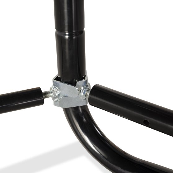 De EXIT robotmaaierstop M is een systeem dat aan trampolines bevestigd wordt, zodat een robotmaaier het gras rondom en onder de trampoline goed kan maaien zonder de trampoline te raken. De stop wordt gevormd door een metalen buis met schroefdraad die je tussen de poten van de trampoline klemt. De buis is in lengte verstelbaar door de schroefdraad en zit dus altijd stevig tussen de poten. Hou bij het bevestigen van de stop rekening met de hoogte van de behuizing van de robotmaaier, zodat je zeker weet dat jouw maaier de stop opmerkt en wegblijft van het trampolineframe. Dankzij de EXIT robotmaaierstop gaan een trampoline en een robotmaaier prima samen in de tuin.