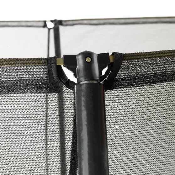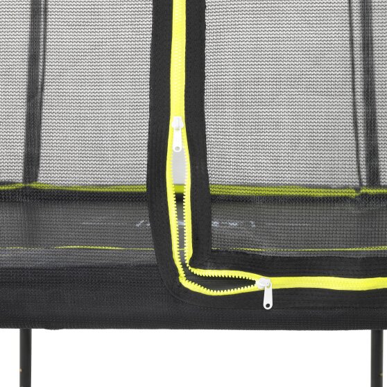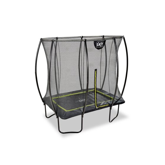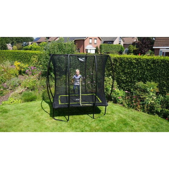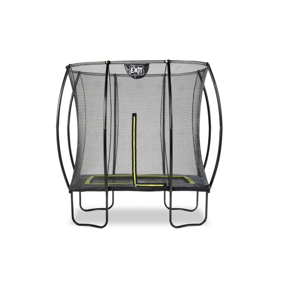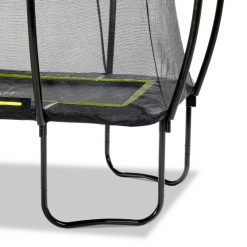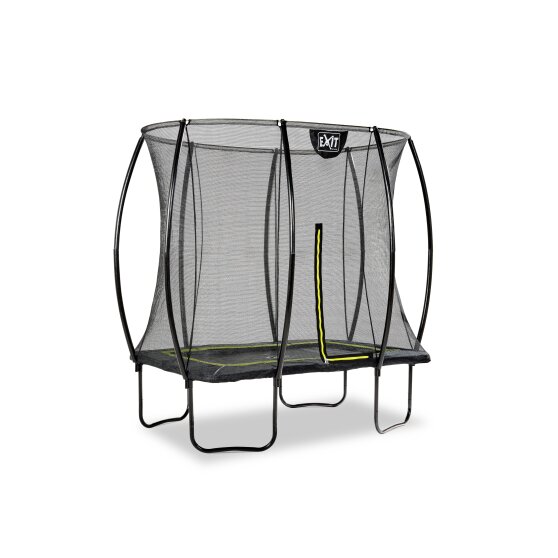 De EXIT Silhouette 153x214cm trampoline op poten is een compacte rechthoekige trampoline met een matzwarte beschermrand. Het veiligheidsnet van de EXIT Silhouette 153x214cm, dat standaard wordt meegeleverd met de trampoline, is voorzien van gebogen staanders zodat het net strakgespannen staat. Dit is niet alleen extra veilig omdat kinderen niet in het net kunnen blijven hangen, maar het oogt ook rustiger in de tuin. Het veiligheidsnet van de EXIT Silhouette is voorzien van een fluorescerende groene ritssluiting die goed opvalt, zodat je direct kunt zien of de rits goed is gesloten.