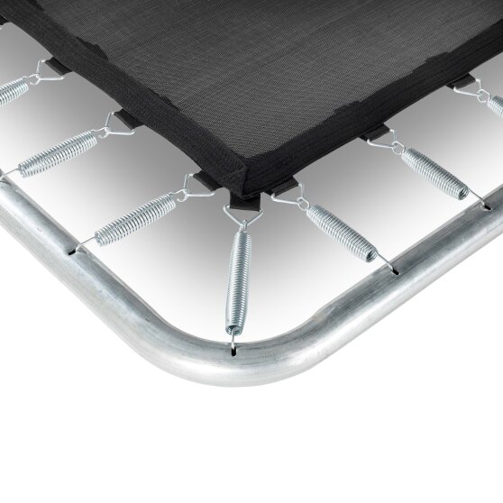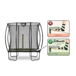 De hoogwaardige beschermrand van de van de EXIT Silhouette 153x214cm dekt de gegalvaniseerde veren volledig af en is voorzien van een speciaal ontwikkeld voetbeschermingssysteem, zodat je voet niet tussen de veren kan komen tijdens het springen. De stevige veren staan garant voor goede springkracht. Het frame van de EXIT Silhouette trampolines is gegalvaniseerd en gepoedercoat zodat roest geen kans maakt. De EXIT Silhouette trampolines zijn stoer, stevig en zorgen voor eindeloos springplezier!