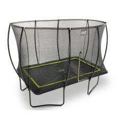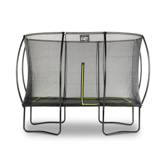 De EXIT Silhouette 214x305cm trampoline op poten is een compacte rechthoekige trampoline met een matzwarte beschermrand. Het veiligheidsnet van de EXIT Silhouette 214x305cm, dat standaard wordt meegeleverd met de trampoline, is voorzien van gebogen staanders zodat het net strakgespannen staat. Dit is niet alleen extra veilig omdat kinderen niet in het net kunnen blijven hangen, maar het oogt ook rustiger in de tuin. Het veiligheidsnet van de EXIT Silhouette is voorzien van een fluorescerende groene ritssluiting die goed opvalt, zodat je direct kunt zien of de rits goed is gesloten.