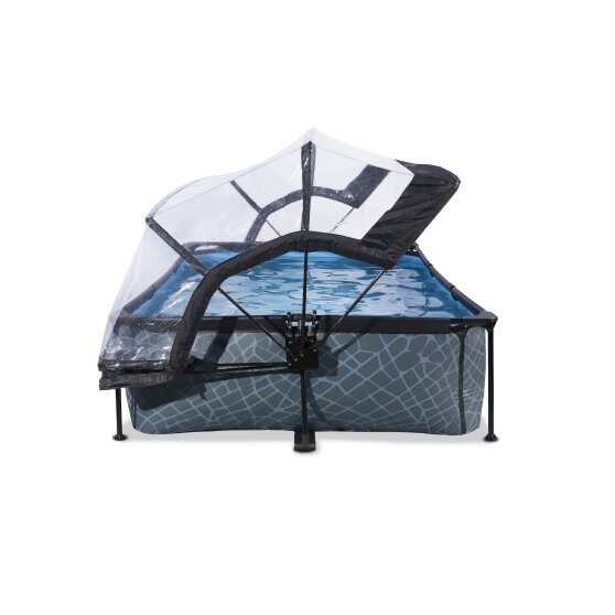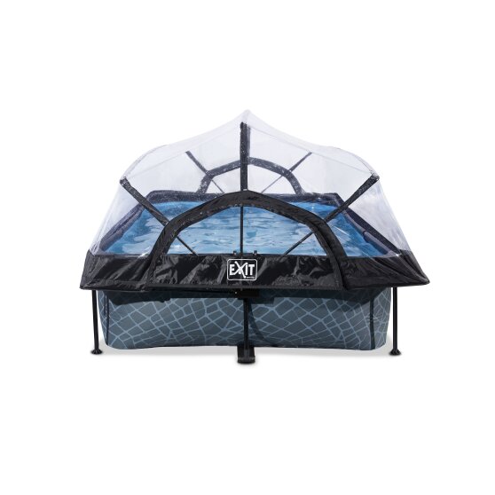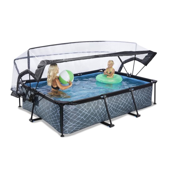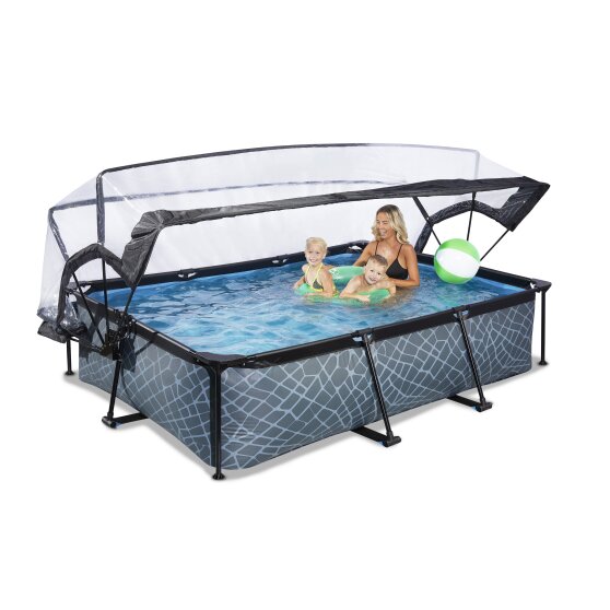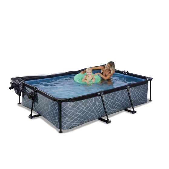 Het EXIT Stone zwembad 300x200x65cm met filterpomp en overkapping is een rechthoekig frame zwembad. Dit compacte zwembad is standaard voorzien van een filterpomp en valt op tussen andere baden door zijn stoere steenpatroon. Ben je op zoek naar een geschikt zwembad voor jonge kinderen of een ondiep bad om zelf lekker in af te koelen? Kies dan voor dit unieke en hoogwaardige frame zwembad van EXIT Toys!