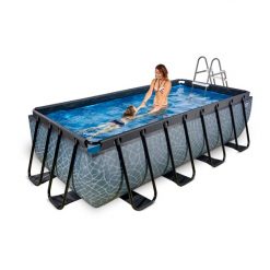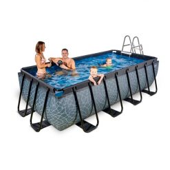 Het EXIT Stone zwembad 400x200x100cm met zandfilter is een rechthoekig frame zwembad. Het zwembad is standaard voorzien van een zandfilterpomp en een zwembadtrap, waarmee je veilig het zwembad in en uit kunt stappen. Met het frame zwembad van EXIT Toys beleef je gegarandeerd de leukste wateravonturen in je eigen tuin!