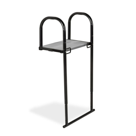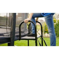 Het EXIT trampoline platform is een extra hulpmiddel om op veilige wijze en moeiteloos op een trampoline op poten te klimmen. Het stalen platform wordt aan de trampoline bevestigd en heeft twee openingen waar je een trampoline ladder aan kunt hangen. Hierdoor ontstaat een prettige opstap naar de trampoline.
