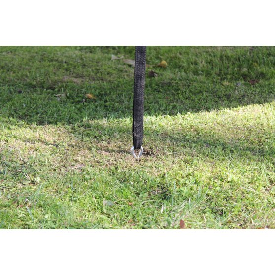 De verankeringsset zorgt ervoor dat de trampoline stevig op de grond staat. Het ankerset wordt geadviseerd bij trampolines die in een open vlakte staan , zodat de trampoline niet kan wegwaaien of niet kan kantelen.