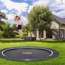 De revolutionaire Salta Royal Baseground Ø 3m05 is een bijzonder innovatieve trampoline van topkwaliteit die op gelijke hoogte ligt met het gras. De trampoline is hierdoor volledig geïntegreerd met je tuin!