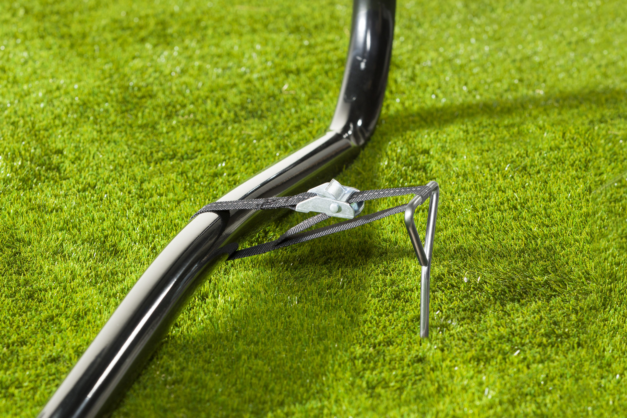 De ankerset zorgt ervoor dat de trampoline stevig op de grond staat. Het ankerset wordt geadviseerd bij trampolines die in een open vlakte staan , zodat de trampoline niet kan wegwaaien of niet kan kantelen.