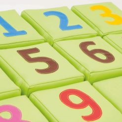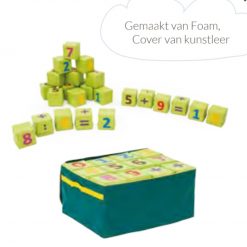 Rekenen en lezen worden gestimuleerd door de blokkenset: op een creatieve en kleurrijke manier maken de kinderen kennis met cijfers op blokken van 15x15cm. De set omvat 24 blokken en wordt aangeleverd in een speciale transporttas