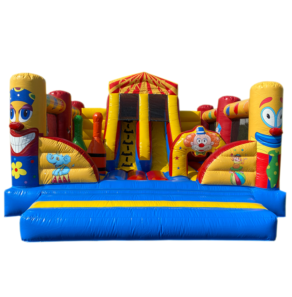 - Circus-thema: Het springkasteel is ontworpen met een vrolijk circus-thema, compleet met clowns, dieren en andere circusattributen. Dit zorgt voor een feestelijke en magische sfeer.