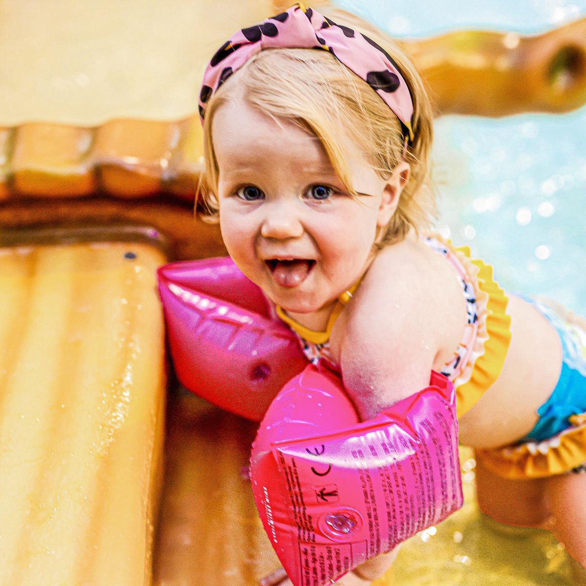 De baby zwembandjes zijn geschikt voor meisjes tussen de 0 en 2 jaar oud met een maximaal gewicht van 15 kg.